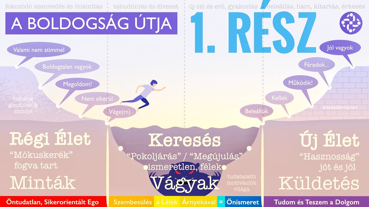 A boldogság útja korszakos, aminek fontos mérföldkövei “a minták csődje” és “a ráció halála”.